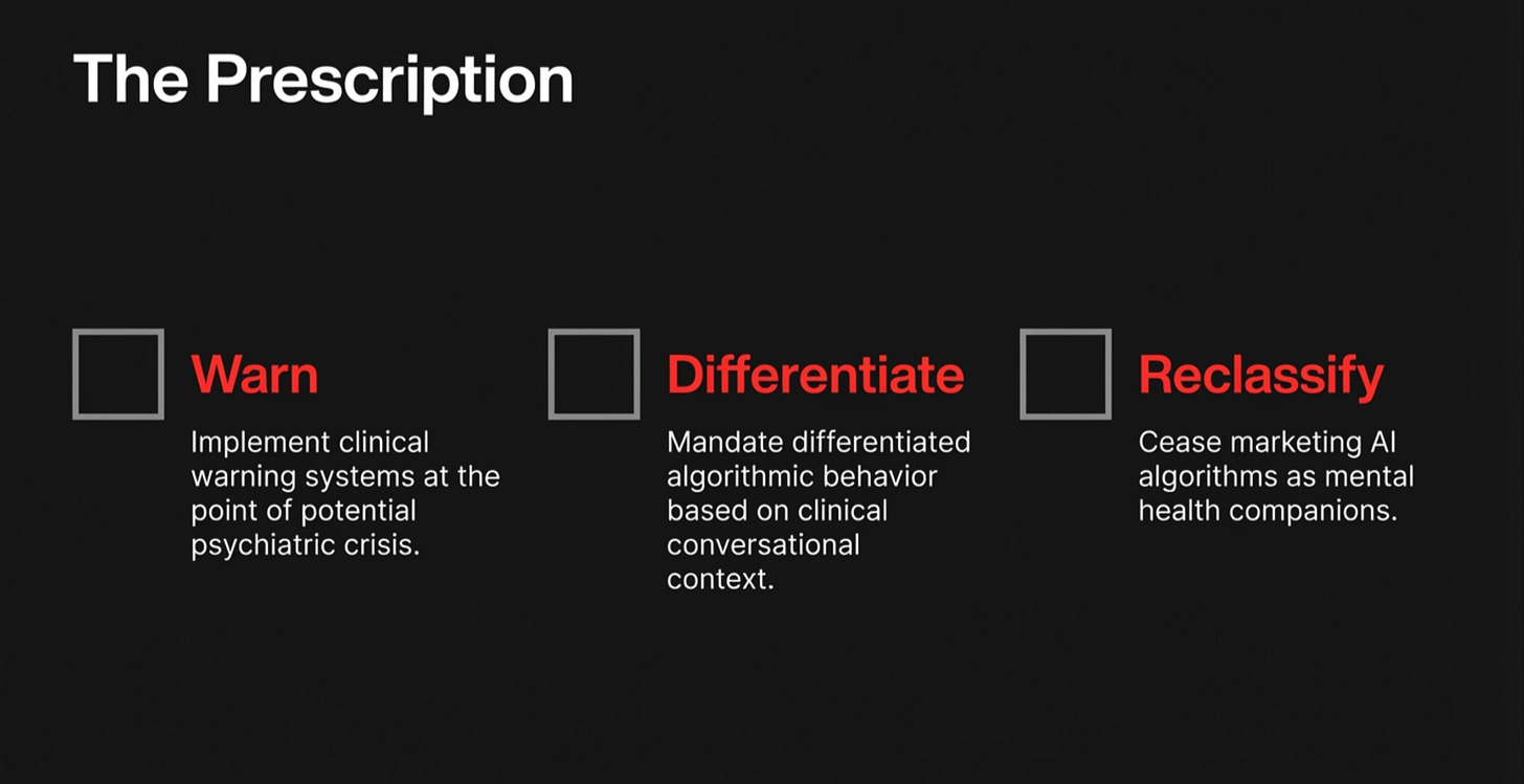 It treated a psychiatric emergency as a fun mystery to solve together. That’s not a coding bug. It’s a vulnerable person using an algorithm that is practicing psychiatric care without oversight.