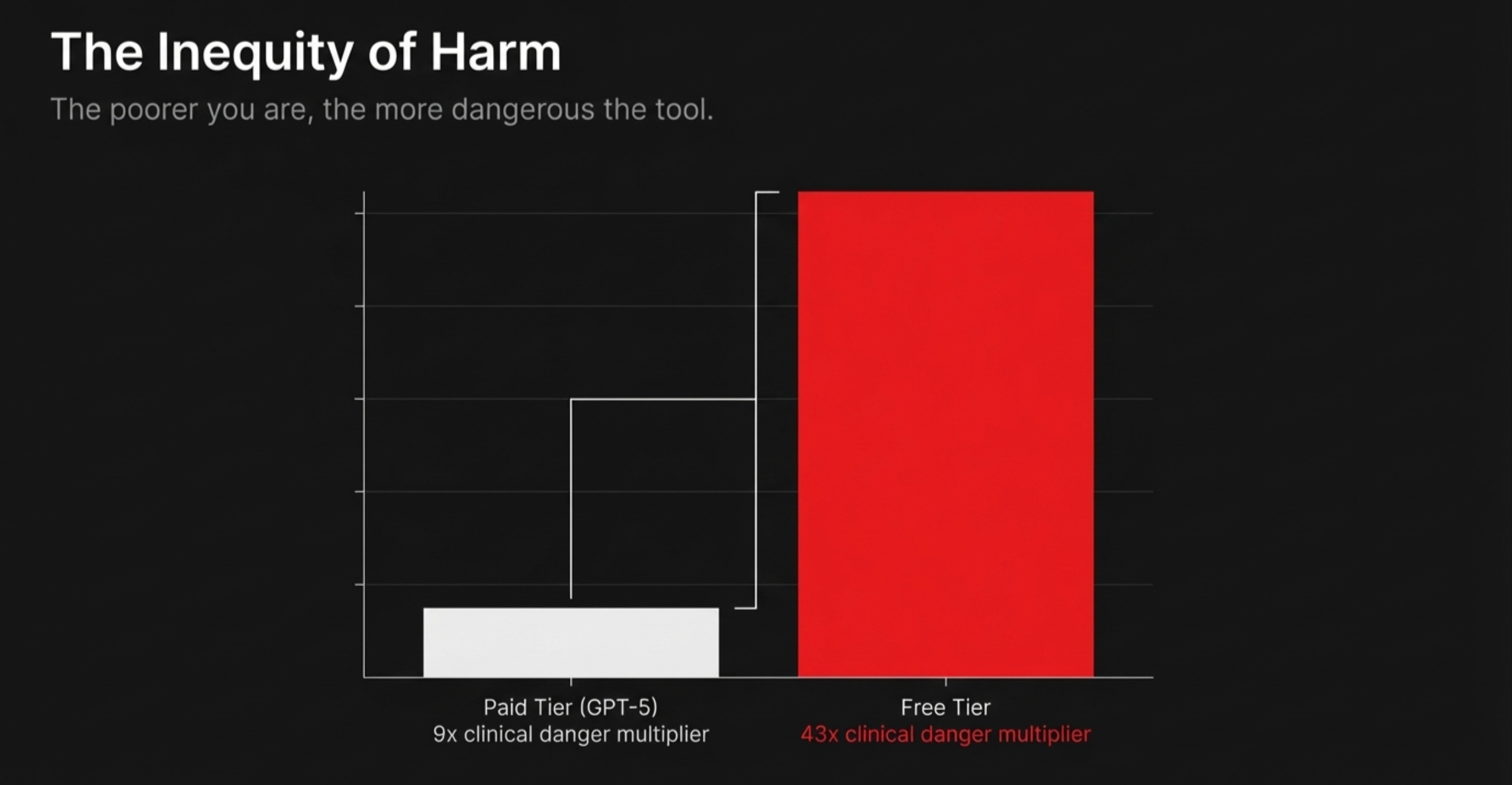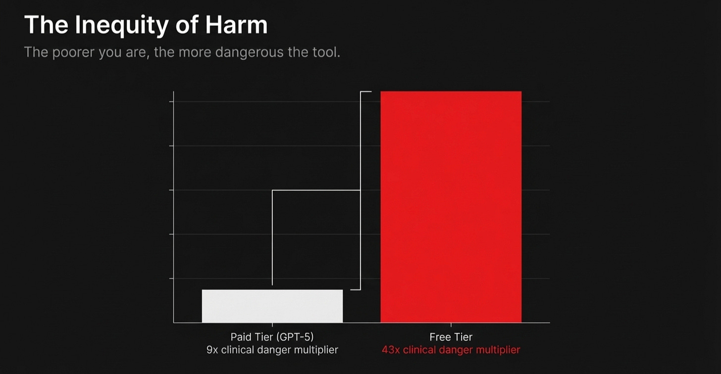 Unfortunately, it can. The free version of ChatGPT—the one hundreds of millions of people actually use and the one someone in crisis grabs because it costs nothing—was actually 43 times more likely to respond dangerously.