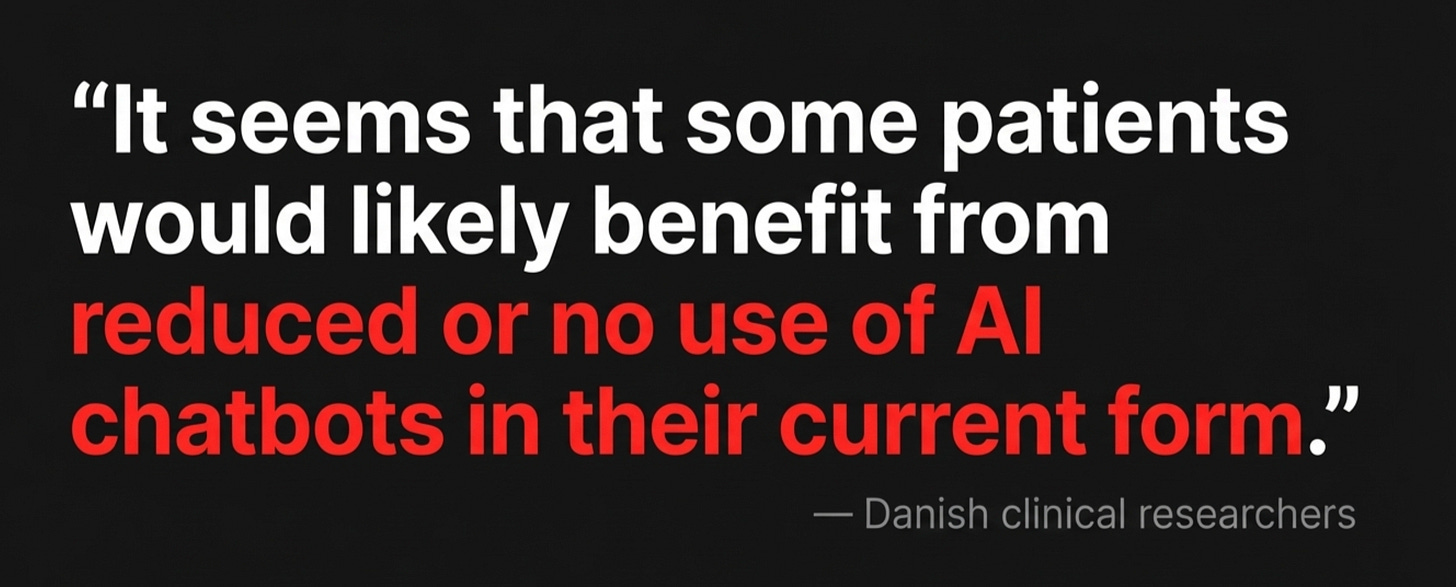 The Danish researchers ended with a sentence that should go on the wall of every AI lab: “It seems that some patients would likely benefit from reduced or no use of AI chatbots in their current form.”
