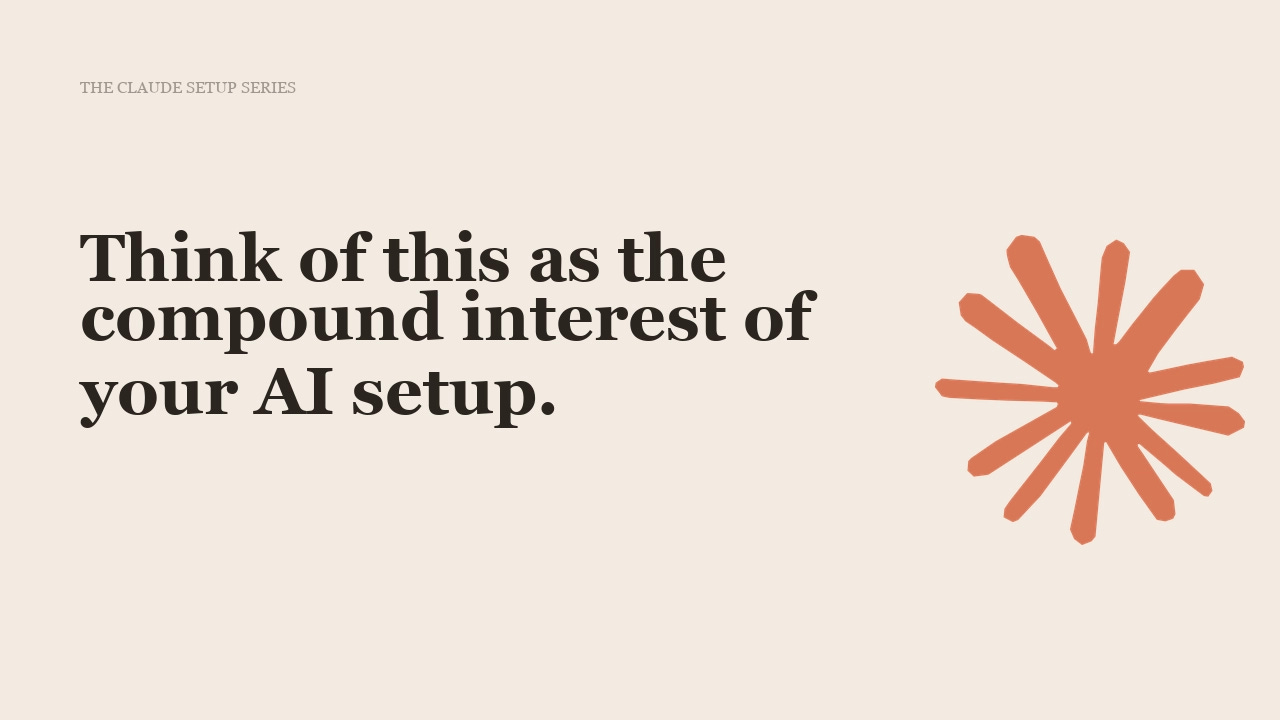 Think of this as the compound interest of your AI setup. You invest time upfront building good prompts and every future use of those prompts pays a dividend. The return grows as the prompts improve.