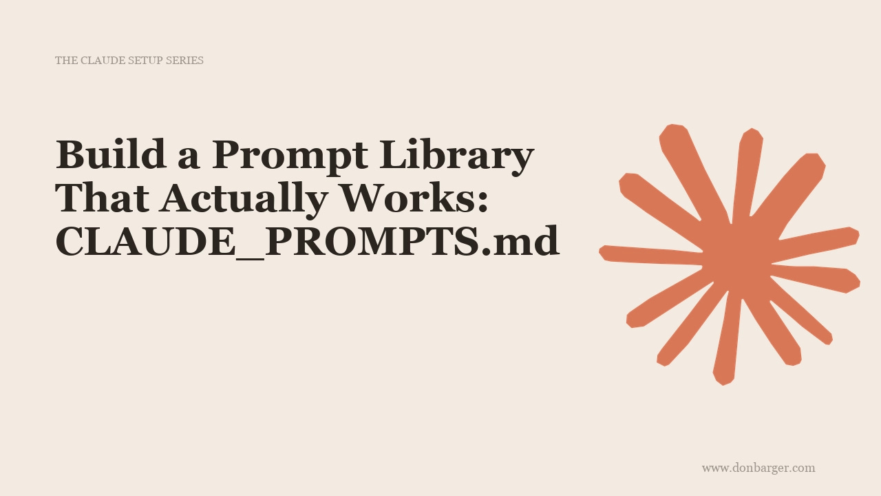 CLAUDE_PROMPTS.md is organized by use case. Each entry follows the RIPEN format. You build it over time. Don’t feel as if you have to fill it in all at once.