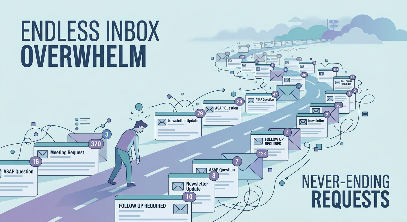 The hidden cost is that those messages are there. They’re sitting in your inbox alongside the messages that actually matter. Every time you open the inbox to find the real email, you’re scanning past the noise. The noise isn’t free. It’s the visual and cognitive equivalent of working in a room where 80% of the surfaces are covered in junk mail you have to look past to find the one thing you came in to do.