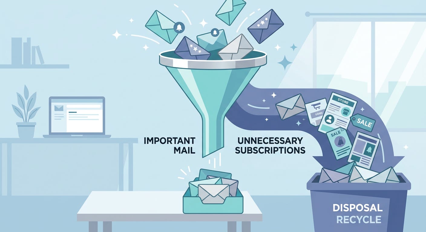 Last week I unsubscribed from almost a hundred email subscriptions in one sitting. I had no idea most of them were even still arriving. This is the easiest elimination in the entire series, and probably the one you most need to do.