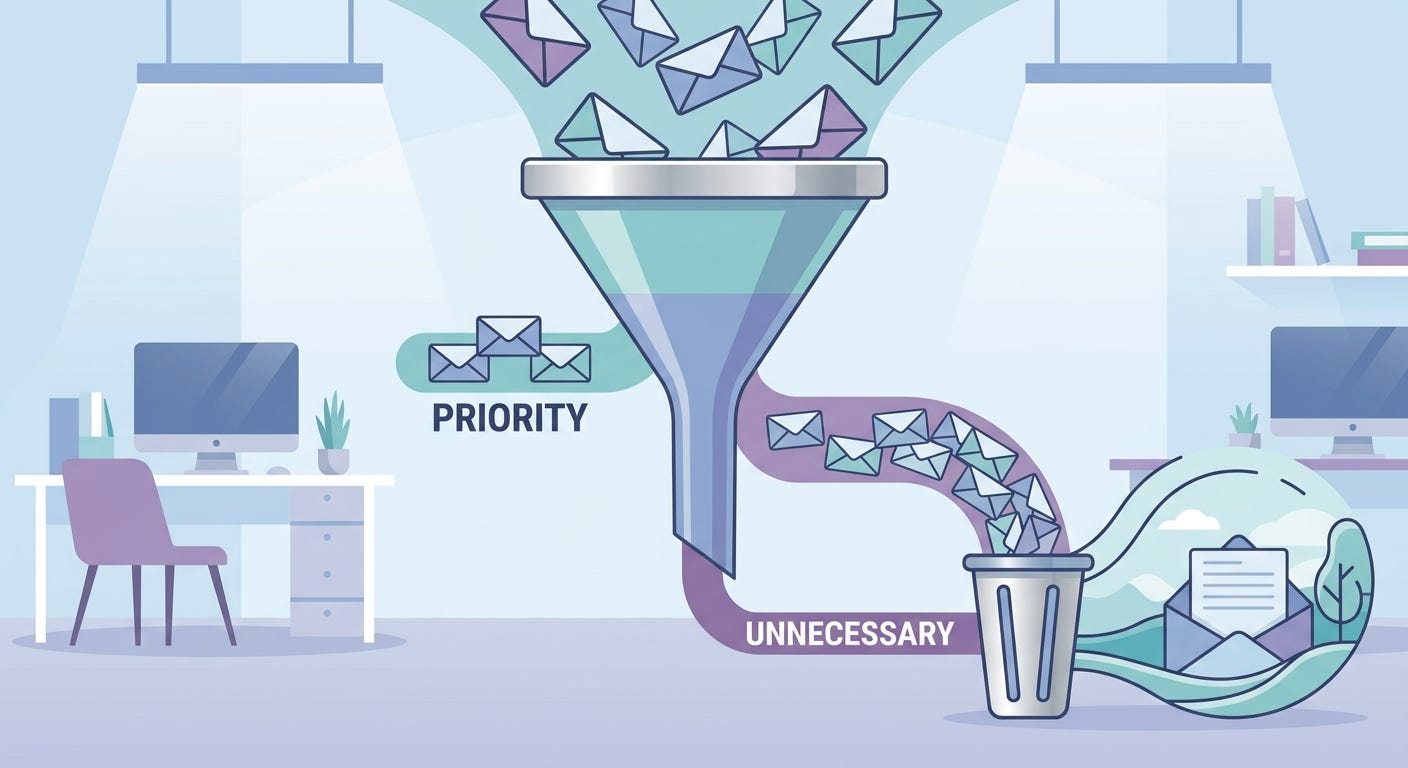 Thanks for reading AI, Innovation, and Faith! This is Part 3 of The Elimination Project. Part 1 (the manifesto) and Part 2 (meetings) build the foundation. Next week, Part 4 takes on the wider email problem — five categories of inbox content and the order to attack them.