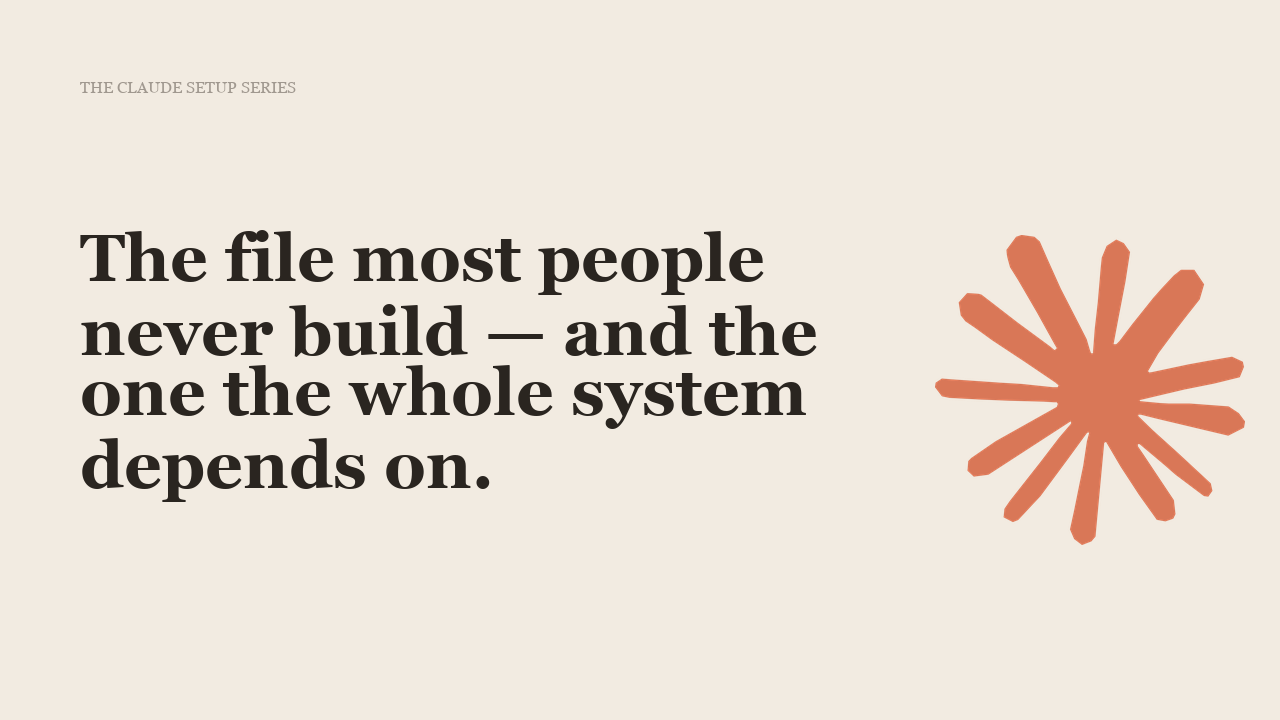 Now that you have a solid CLAUDE.md file, let’s move on to the next key to your AI understanding you. Here’s the file most people never build — and the one the whole system depends on.